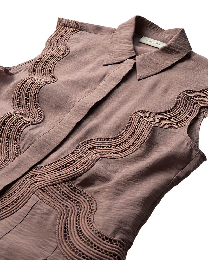 Copenhagen Muse CMCOLE-mekko on elegantti ja naisellinen valinta, joka yhdistää hienostuneet yksityiskohdat ja laadukkaat materiaalit. Mekossa on lyhyet hihat, piilotettu nappikiinnitys edessä sekä kauniita pitsileikkauksia, jotka tuovat asuun herkkyyttä ja tyylikkyyttä. Yläosan vartalonmyötäinen leikkaus korostaa vyötäröä, ja hameosassa on vuori, joka lisää käyttömukavuutta.