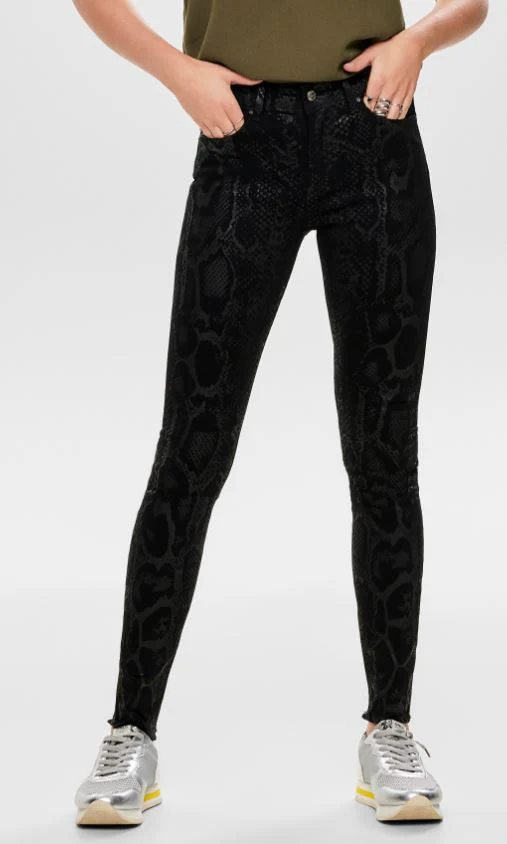 -70%Only Naisten Housut, Blush Mid Raw Snakedenim Musta Kuosi—