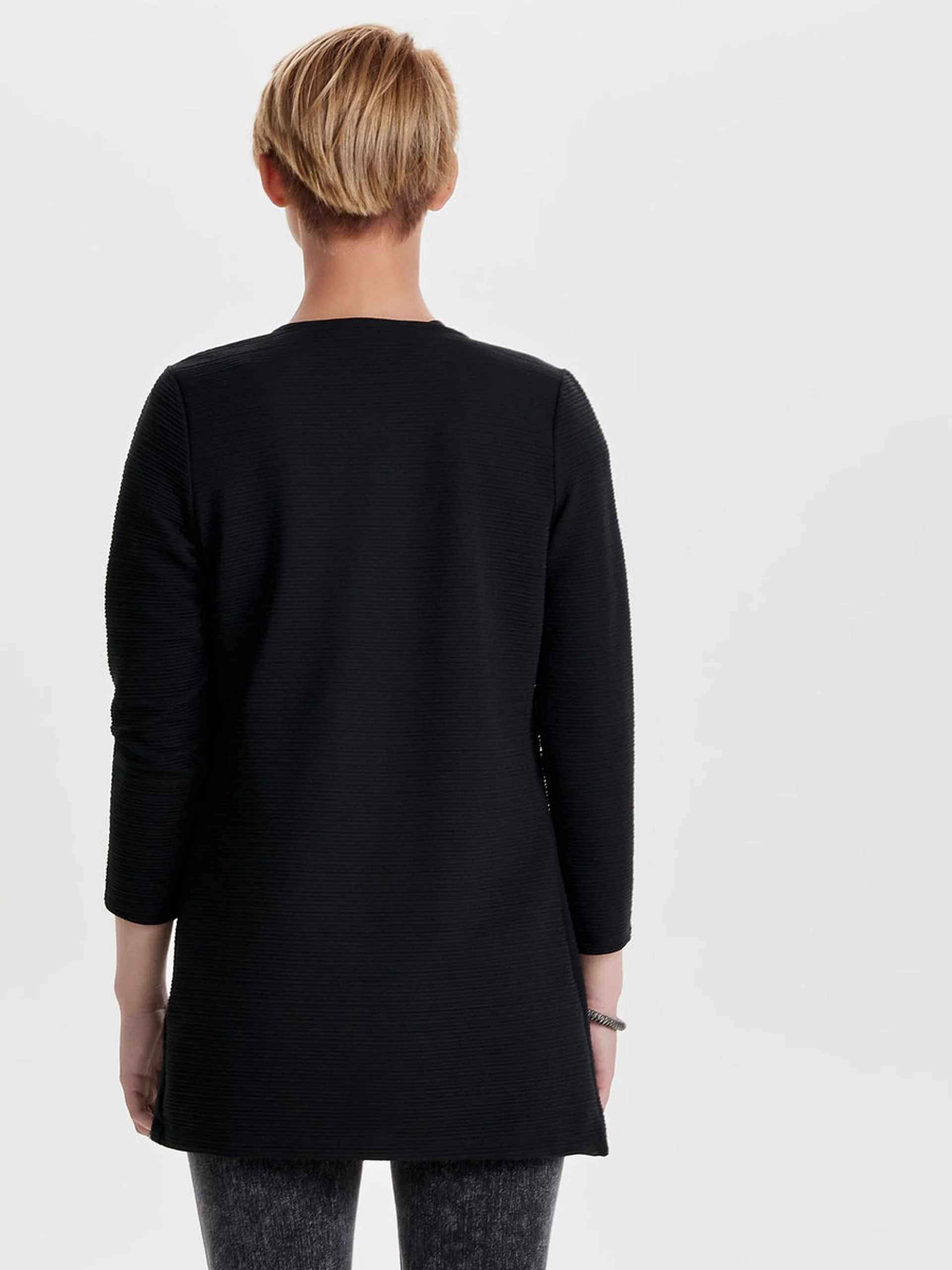Only naisten trikootakki 7/8-hihoilla. Kankaassa raitastruktuuripinta, edestä avoin. Koossa S pituus n.72 cm.
