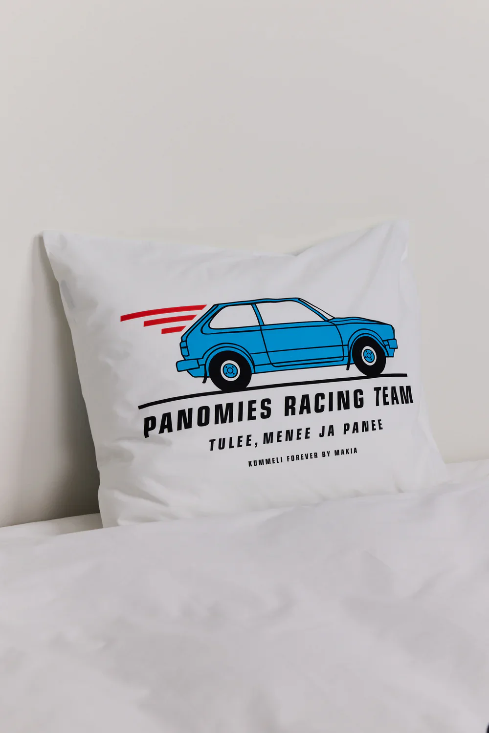 Kummeli Forever by Makia -malliston pussilakanasetti, jossa kuvituksena Panomies-autoprintti. Materiaali on laadukasta luomupuuvillaa ja kankaantiheys (TC) on 144.