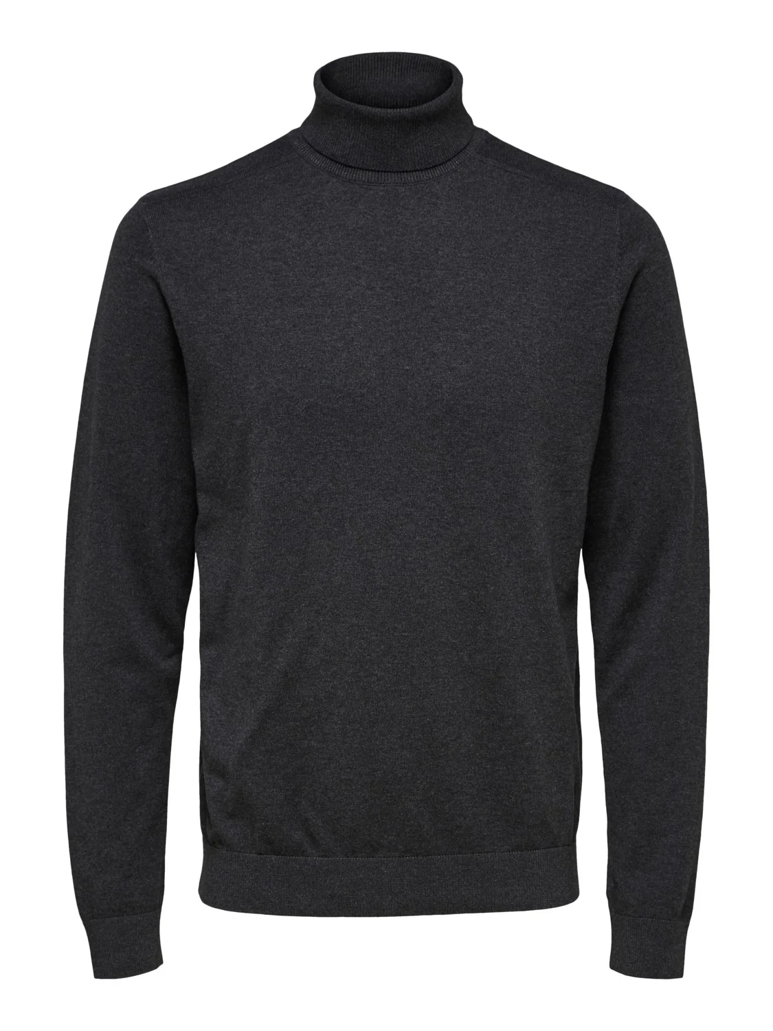 -70%Selected, Miesten Pooloneule, Berg Roll Neck Tummanharmaa—