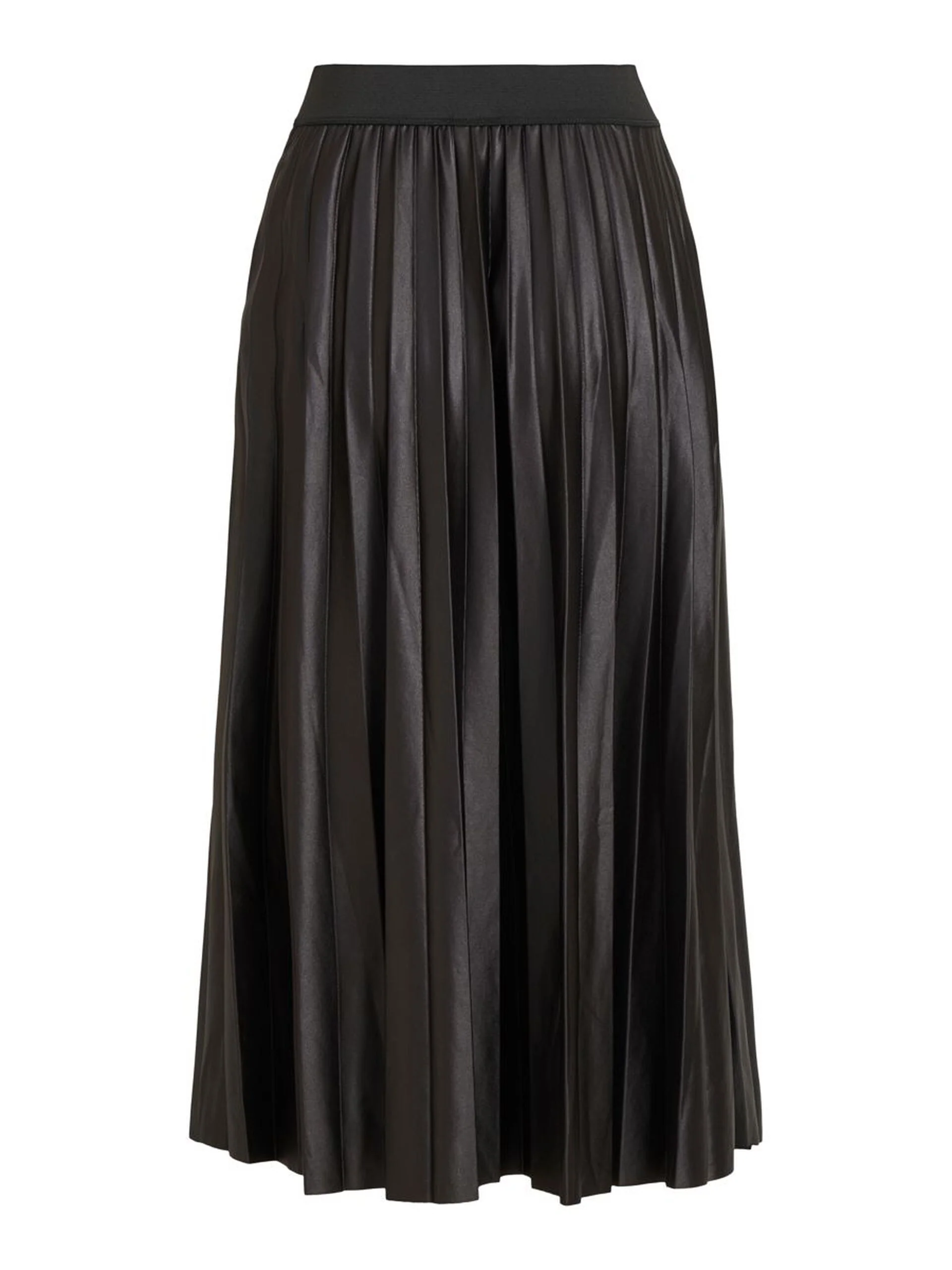 Vilan kaunis midimittainen hame, jossa on kiiltävä kangas. Joustava vyötärönauha ja tyylikäs pliseerattu kangas